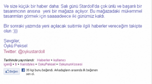Dün yeni bir yazı ile bizlere merhaba diyen Öykü Peksel, yazısının sonunda süper bir müjdeyle herksei çok meraklandırdı! Peksel, bugün çok ünlü bir tasarımcının anısına bir mağaza açılacağını belirtti!